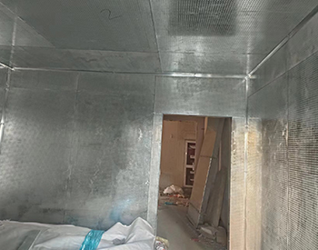 3.5 無(wú)吊桿支撐的抗爆吊頂適用于跨度?。s6m左右)空間小的工程,跨度再大可以設置結構梁。冷彎等邊槽鋼龍骨直接固定在四面側墻上(或結構梁上),不用做吊桿。龍骨的規格可按抗爆壓力值和跨度等由結構師選配。